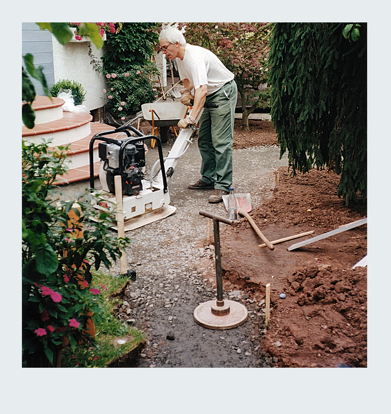 Das Gartenprojekt ging in die nächste Phase. Unser Garten sollte neue, gut begehbare Wege und Flächen erhalten, die nicht nur praktisch, sondern auch optisch ansprechend sind. Nachdem wir uns für ein Steindesign entschieden hatten, das unseren Gestaltungswünschen perfekt entsprach, konnte das Projekt beginnen. In Eigenregie entfernten wir zunächst alle alten Beeteinfassungen im Vorgarten, die alte Müllbox und alle vorhandenen Steinflächen im Garten und bereiteten den gesamten Untergrund für den neuen Belag vor. Dazu gehörte das Einbringen und Verdichten von Schotter, Schutzvlies und Sand als Untergrund sowie das Anlegen von stabilen Seitenfundamenten. Anschließend wurden die neuen Steine sorgfältig verlegt, teilweise mit Mustern, um ein dauerhaftes und harmonisches Ergebnis zu erzielen. Heute fügen sich die Gartenwege harmonisch in die Gesamtgestaltung unseres Gartens ein.