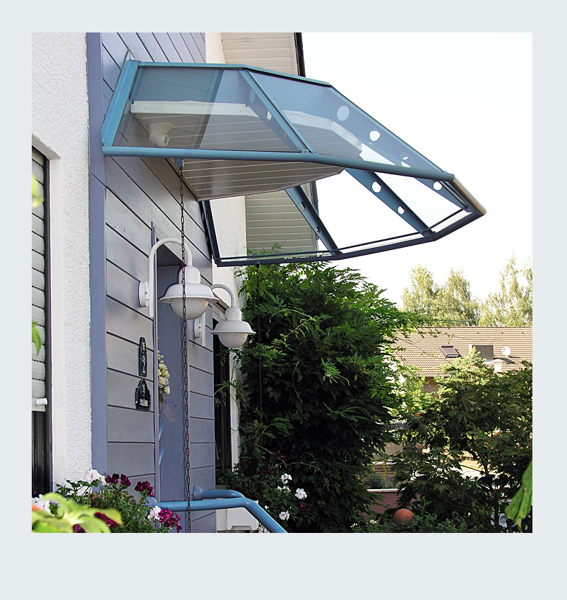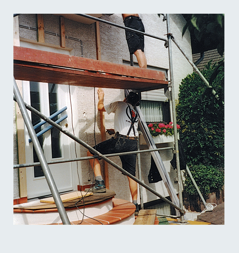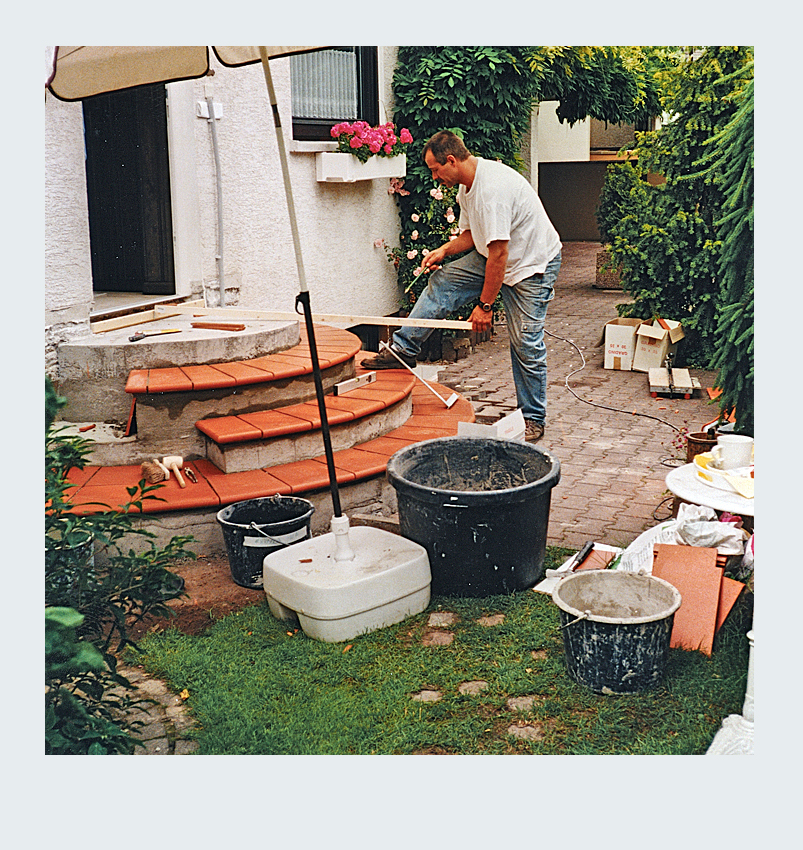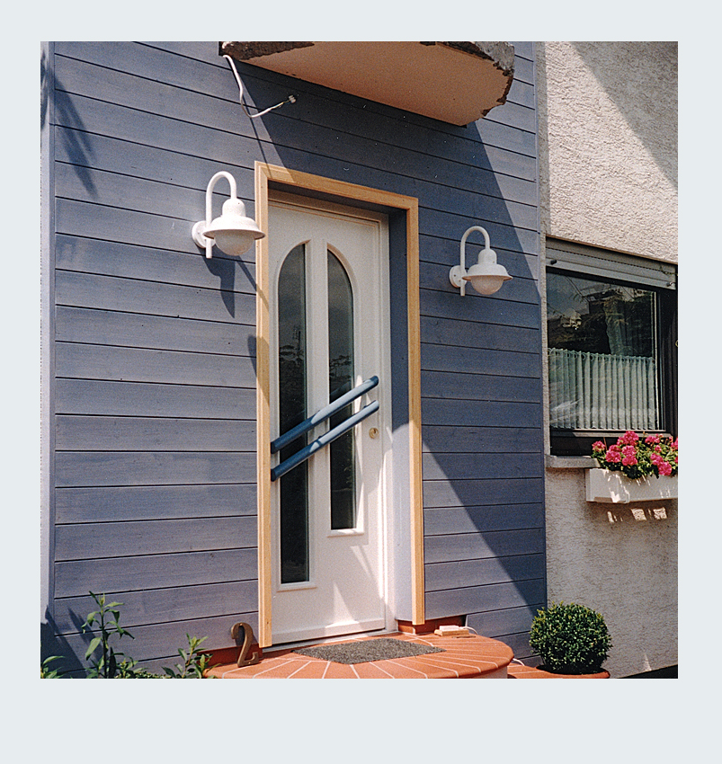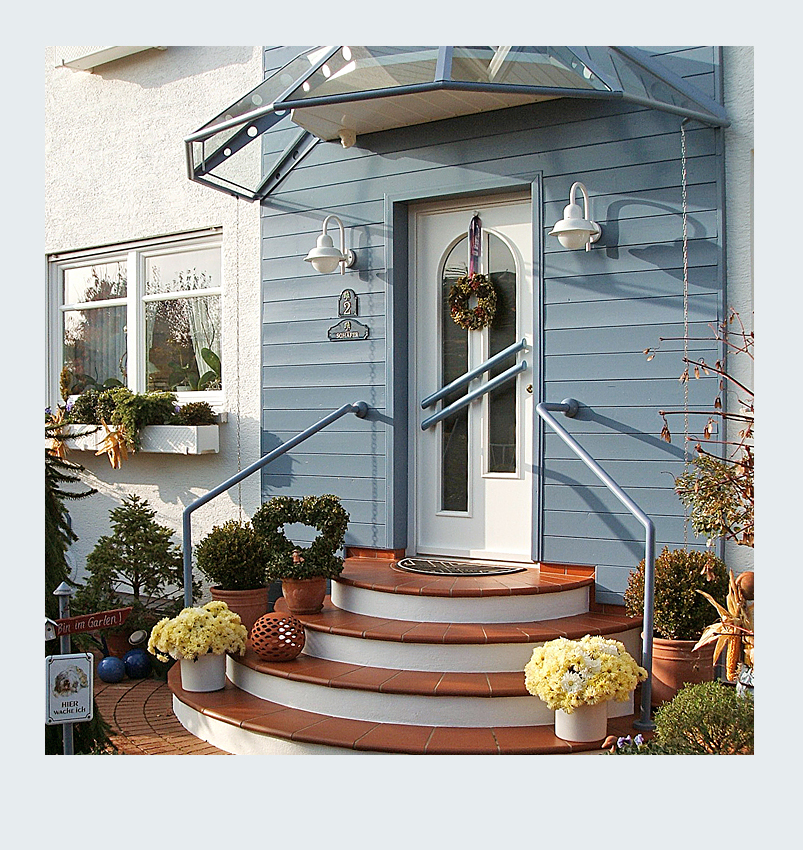 Um den Eingangsbereich unseres Hauses einladender und moderner zu gestalten, haben wir ein sehr umfangreiches Projekt gestartet. Wir entwarfen ein individuelles Design mit einer markanten blauen Holzwand. Das Projekt stellte uns vor einige Herausforderungen, da die meisten Arbeiten zu aufwändig oder technisch für uns nicht machbar waren. Deshalb haben wir die meisten Arbeiten an Fachleute vergeben: die Entfernung der alten Treppe inklusive Fundament, das Gießen eines neuen Betonrohlings nach unseren Vorgaben, das Zuschneiden und Verlegen der Cotto-Treppenstufen sowie den Bau und die Montage der von uns entworfenen Haustür und den Entwurf und Bau des neuen Vordachs. Die gesamte Gestaltung wurde von uns vorgenommen und sorgfältig geplant, um sicherzustellen, dass der neue Eingangsbereich ganz unseren Vorstellungen entspricht.