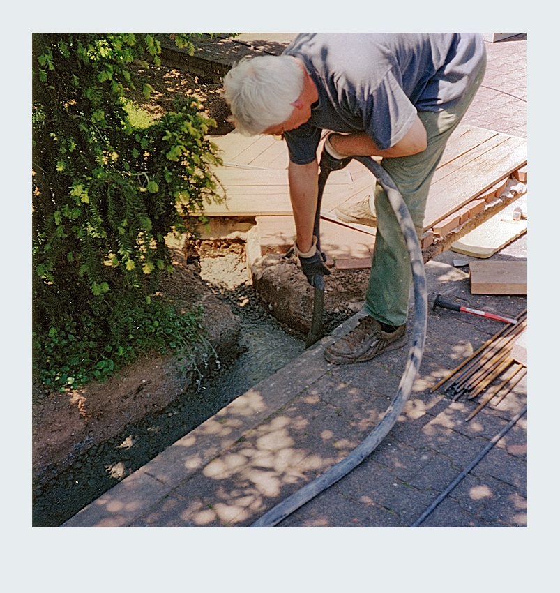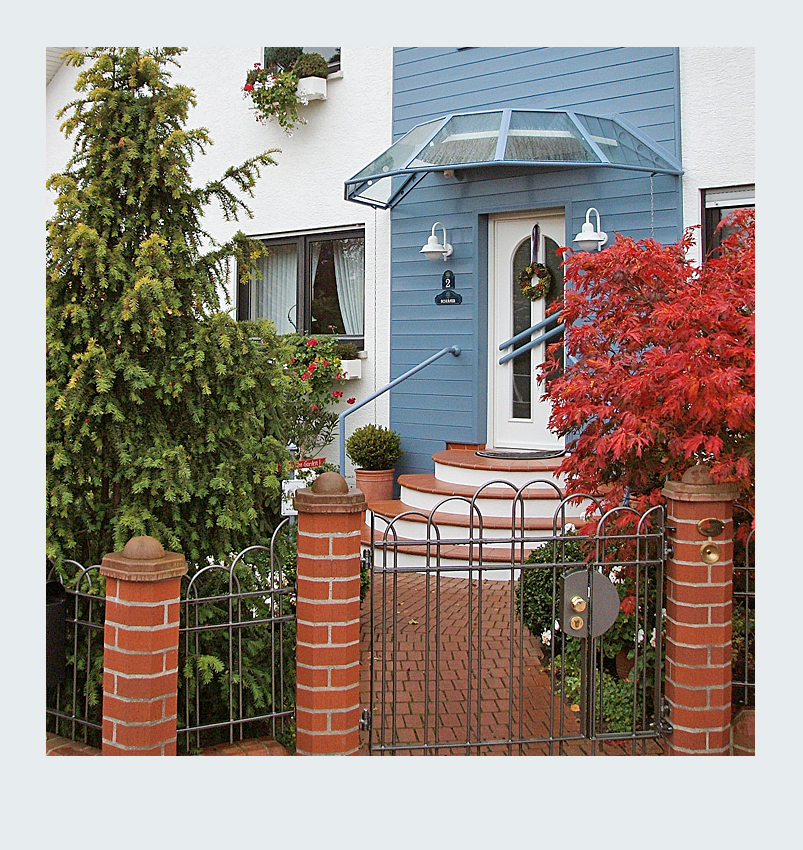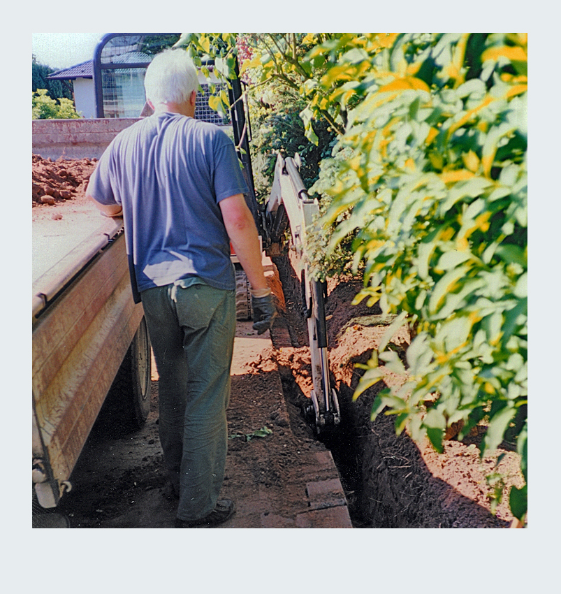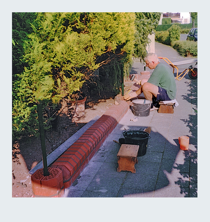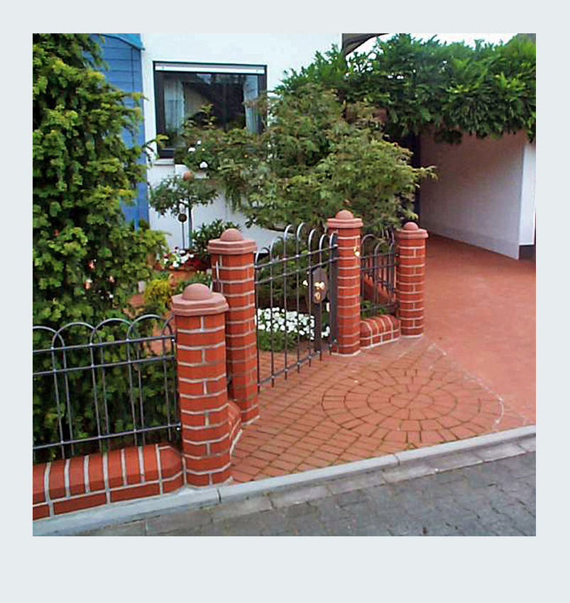 Die Gestaltung unseres Gartenzauns war für uns ein richtiges Großprojekt, das uns fast zwei Jahre intensiv beschäftigt hat. Von der ersten Planung bis zur Fertigstellung haben wir die meisten Arbeiten selbst ausgeführt. Mit Hilfe eines befreundeten Handwerkers, der uns seinen Bagger zur Verfügung stellte, hoben wir einen über 50 Meter langen Graben für das Streifenfundament aus. Gemeinsam gossen wir das Fundament und betonierten die Eisenrohre für die späteren Zaunpfosten ein. Im darauffolgenden Jahr ging es ans Mauern der Zaunelemente. In aufwendiger Handarbeit mauerten wir 19 Steinpfeiler mit niedrigen Verbindungsmauern auf einer Gesamtlänge von über 50 Metern. Besonders stolz sind wir auf die Zaunelemente und das Gartentor, die wir selbst entworfen und in Zusammenarbeit mit einer Metallbaufirma gefertigt und montiert haben. Das Ergebnis ist ein individuell gestalteter Gartenzaun, der in jeder Hinsicht unseren Vorstellungen entspricht.