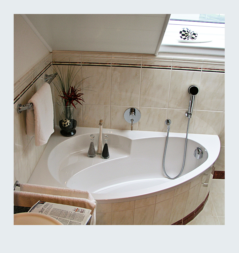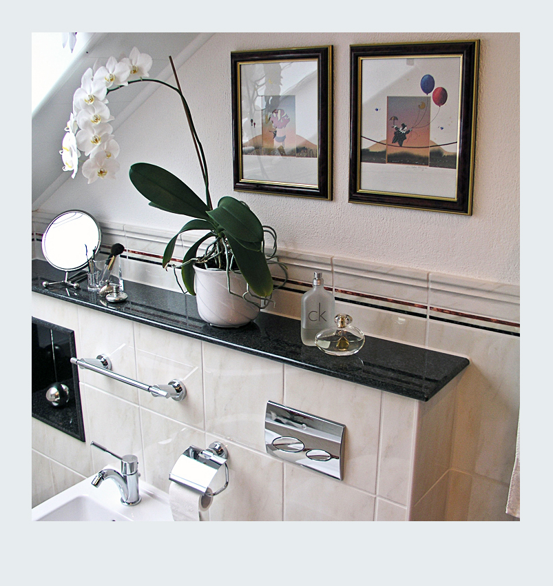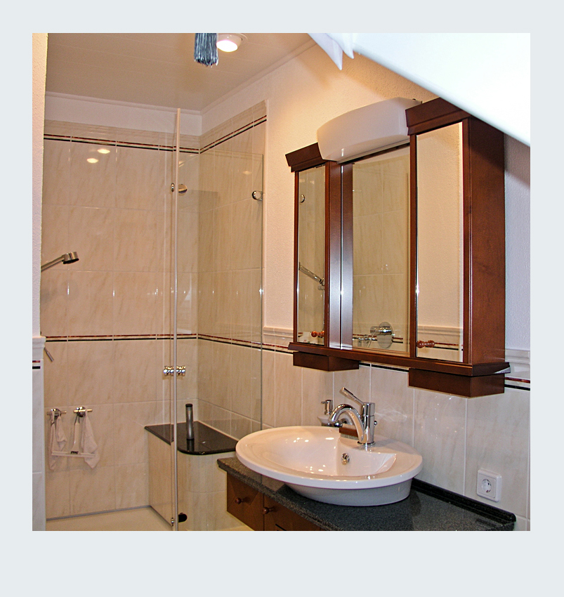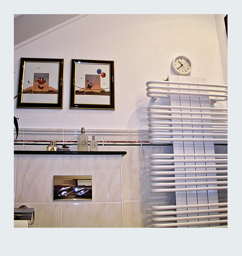 Unser Badezimmer im Obergeschoss wurde komplett saniert und modernisiert. Wir wollten eine zeitgemäße Atmosphäre schaffen, die sowohl funktional als auch optisch gut aussieht. Das alte Bad wurde komplett entkernt und der Putz gründlich ausgebessert. Das kleine Dachflächenfenster wurde gegen ein großes Atelierfenster ausgetauscht, damit mehr Licht in das Bad kommt. Moderne Vorwandelemente und neue Elektroleitungen wurden eingebaut. Von der vollständigen Entkernung über die Fliesenarbeiten an Wand und Boden bis hin zur Einrichtung mit Badewanne, WC, Bidet und einem modernen Duschbereich – fast alle Arbeiten wurden in Eigenregie durchgeführt. Entstanden ist ein modernes Badezimmer mit hohem Komfort.