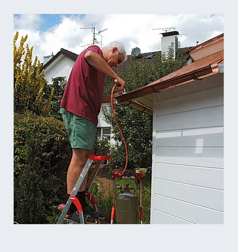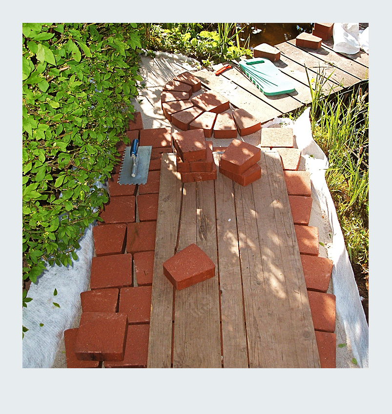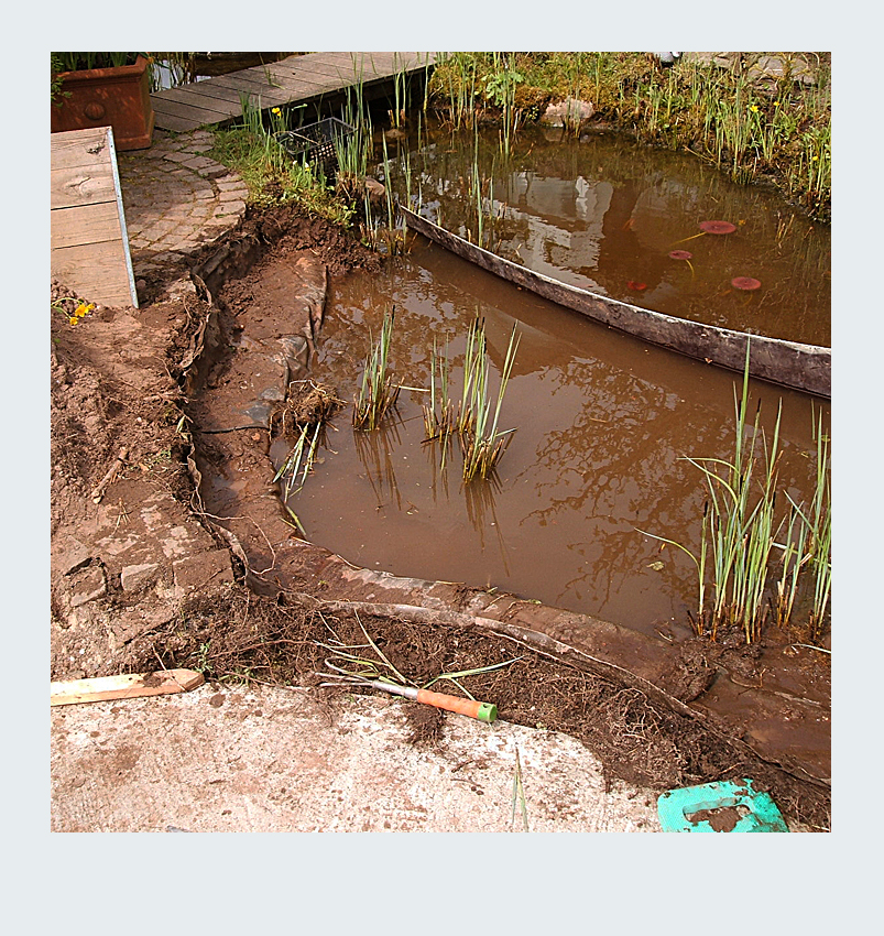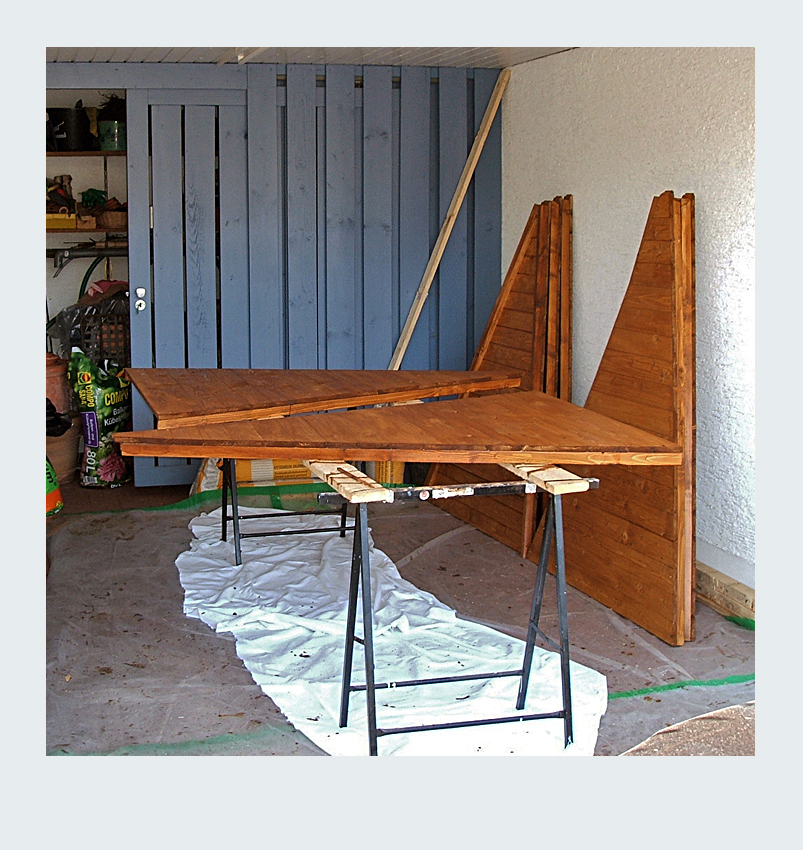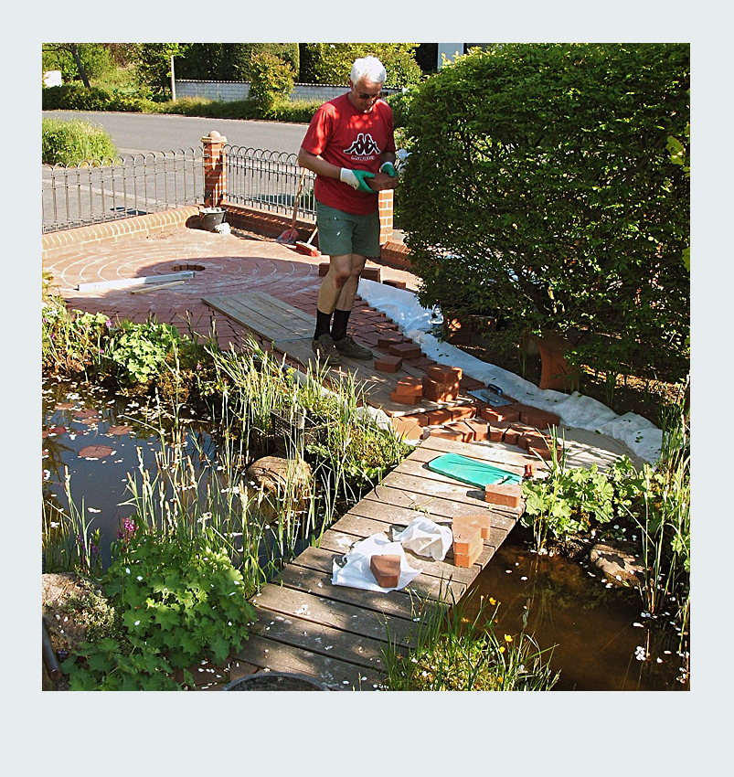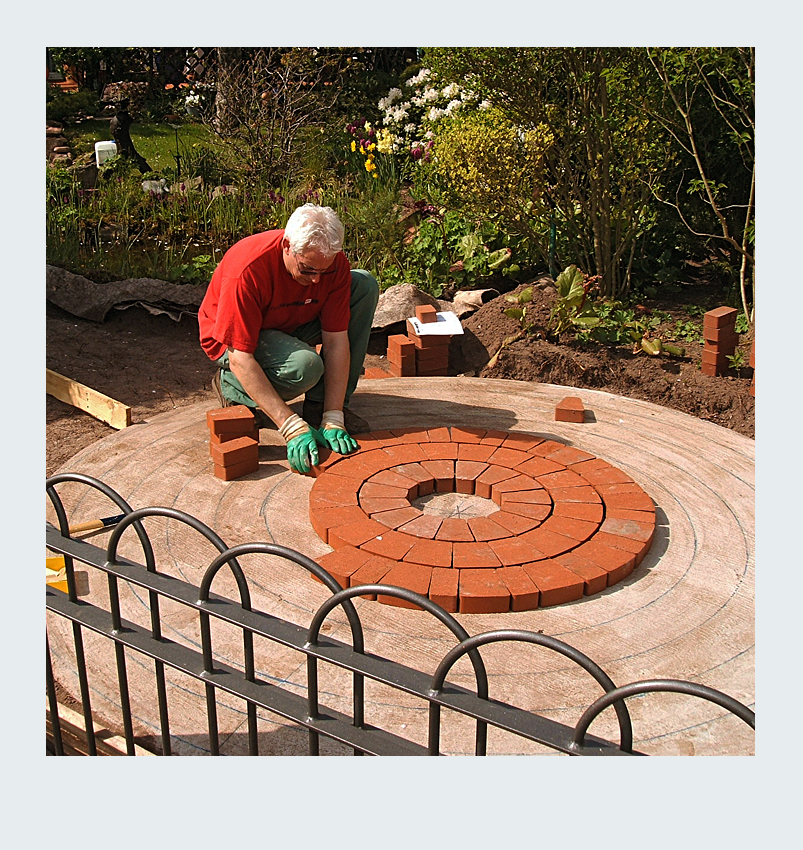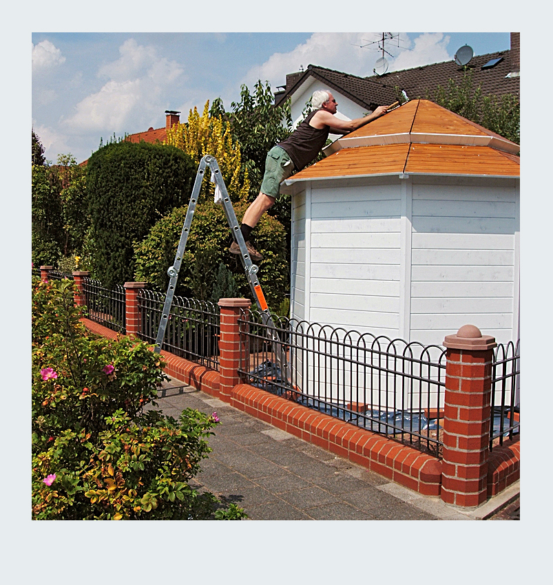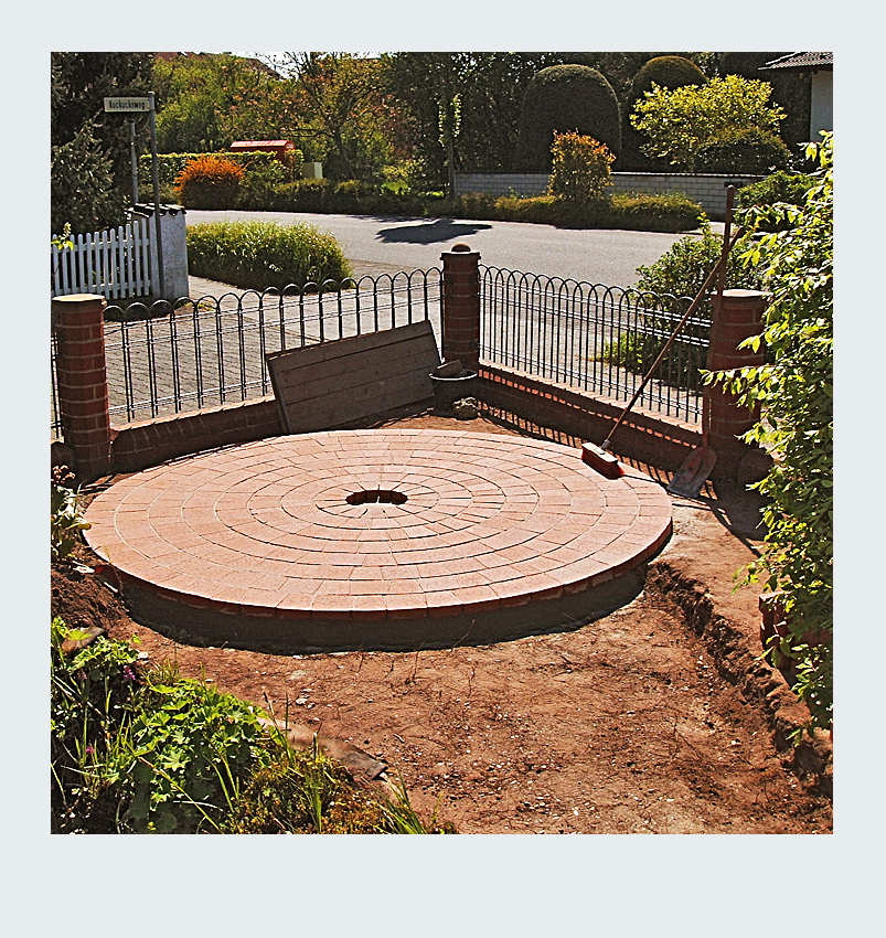 Das Projekt erforderte einige Veränderungen in unserem Garten. Um Platz für den Pavillon zu schaffen, entfernten wir die Bank am Teich und die die dahinterstehenden Bäume. Die Teichform wurde leicht angepasst, damit der Pavillon harmonisch in den Garten integriert werden konnte. Die Bodenfläche für den Pavillons bekam eine 20cm dicke Bodenplatte aus Beton. Der Unterbau des Pavillons wurde in Eigenleistung gepflastert, um einen stabilen Untergrund zu schaffen. Auch der angrenzende Weg zur Teichbrücke wurde neu angelegt und perfekt an die bestehenden Gartenwege angepasst. Durch diese Veränderungen fügt sich der Pavillon sehr gut in das Gesamtbild des Gartens ein. Aus Kostengründen entschieden wir uns, den Pavillon teilweise als Bausatz zu kaufen. Die einzelnen Bauteile haben wir sorgfältig überarbeitet, mehrfach gestrichen und anschließend selbst montiert. Um unserem Pavillon eine individuelle Note zu geben, haben wir einige Elemente wie das abgestufte Kupferdach mit Regenrinne, die beiden Fenster, die Tür und eine halbrunde Sitzbank für den Innenraum selbst entworfen und angefertigt. Das Ergebnis ist ein einzigartiger Blickfang, der nicht nur ein Highlight in unserem Garten ist, sondern auch ein wunderbarer Ort zum entspannen.