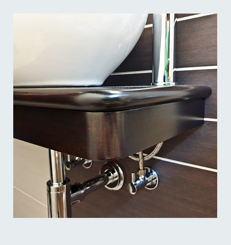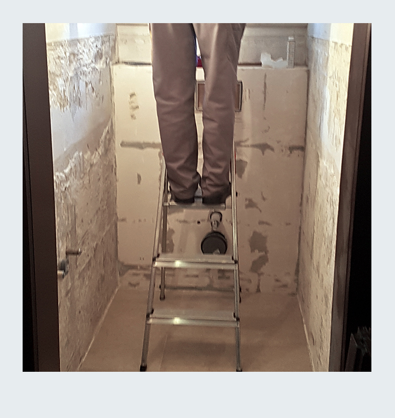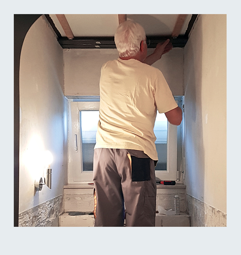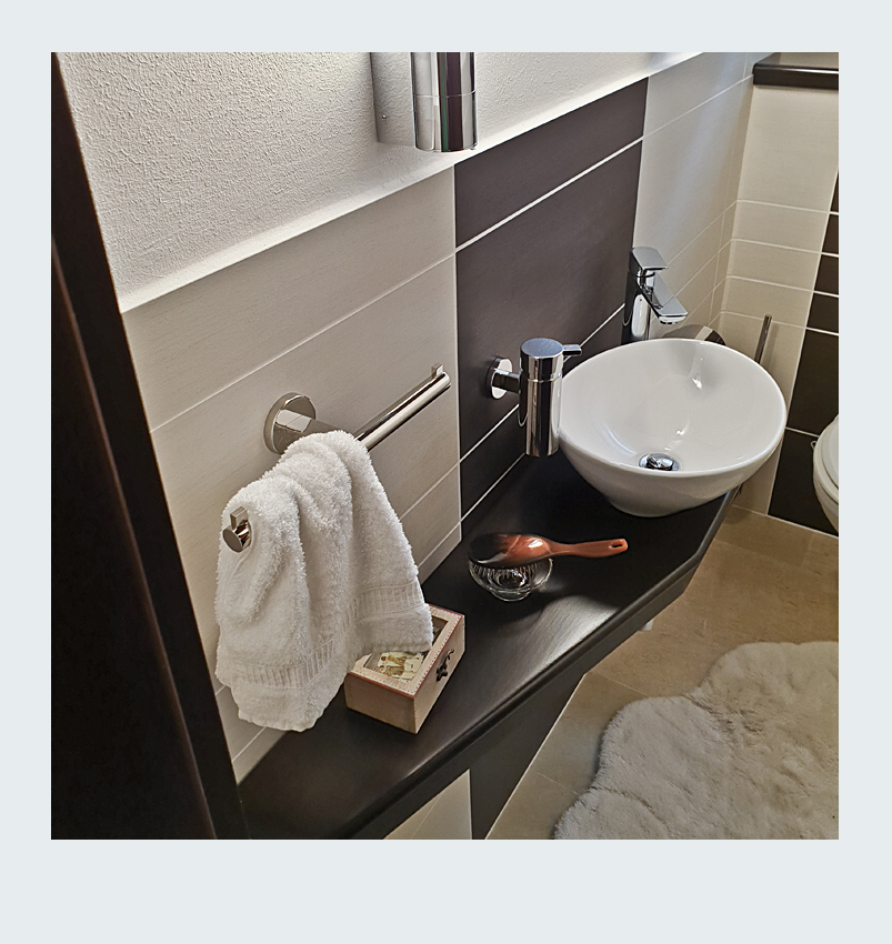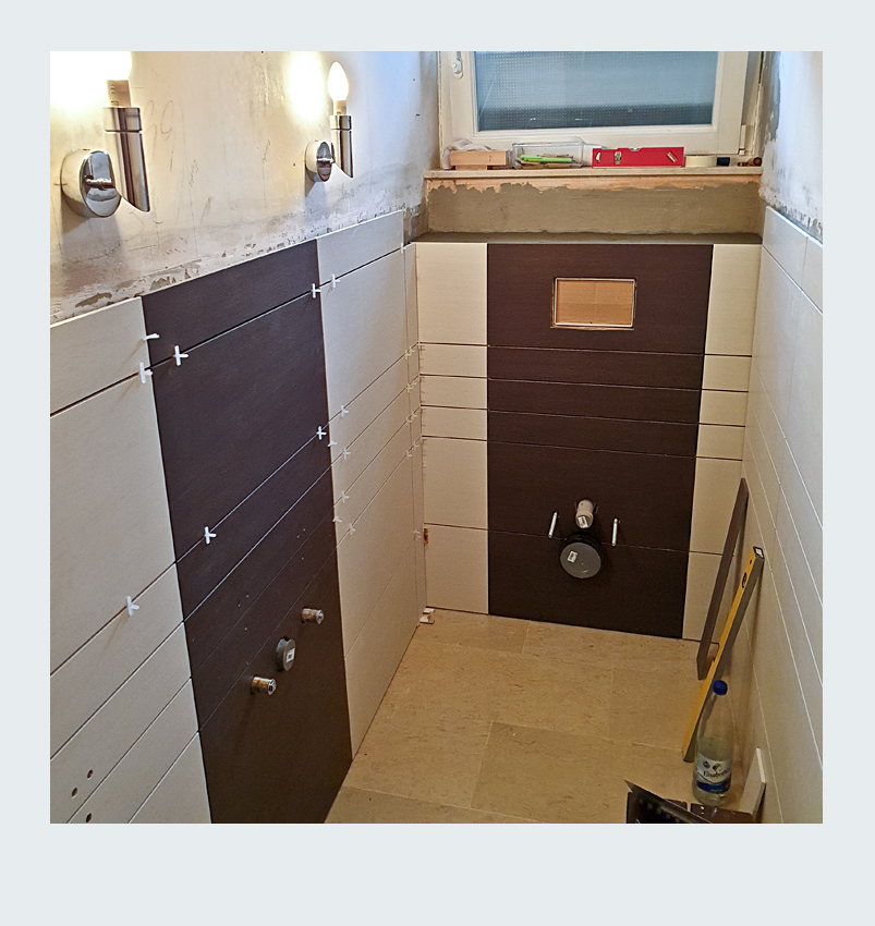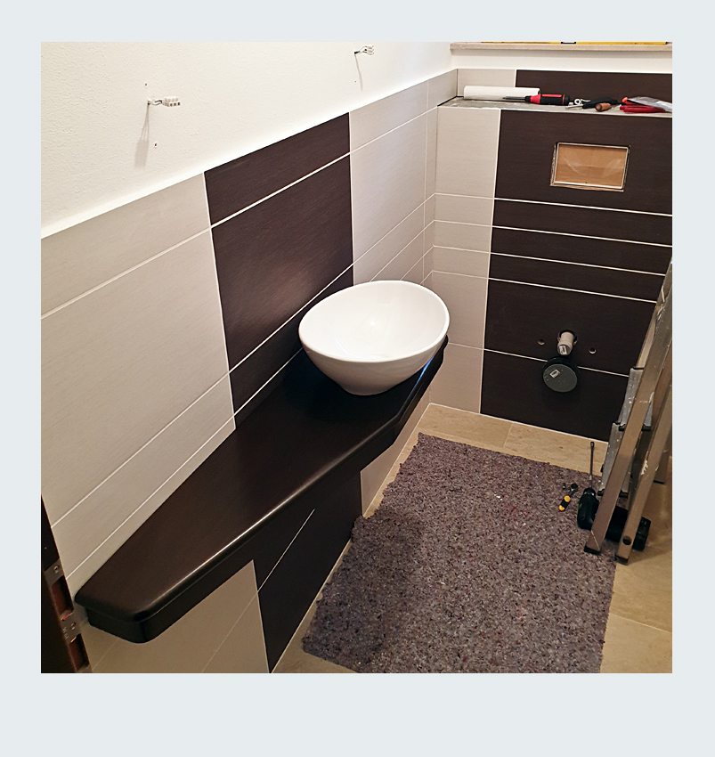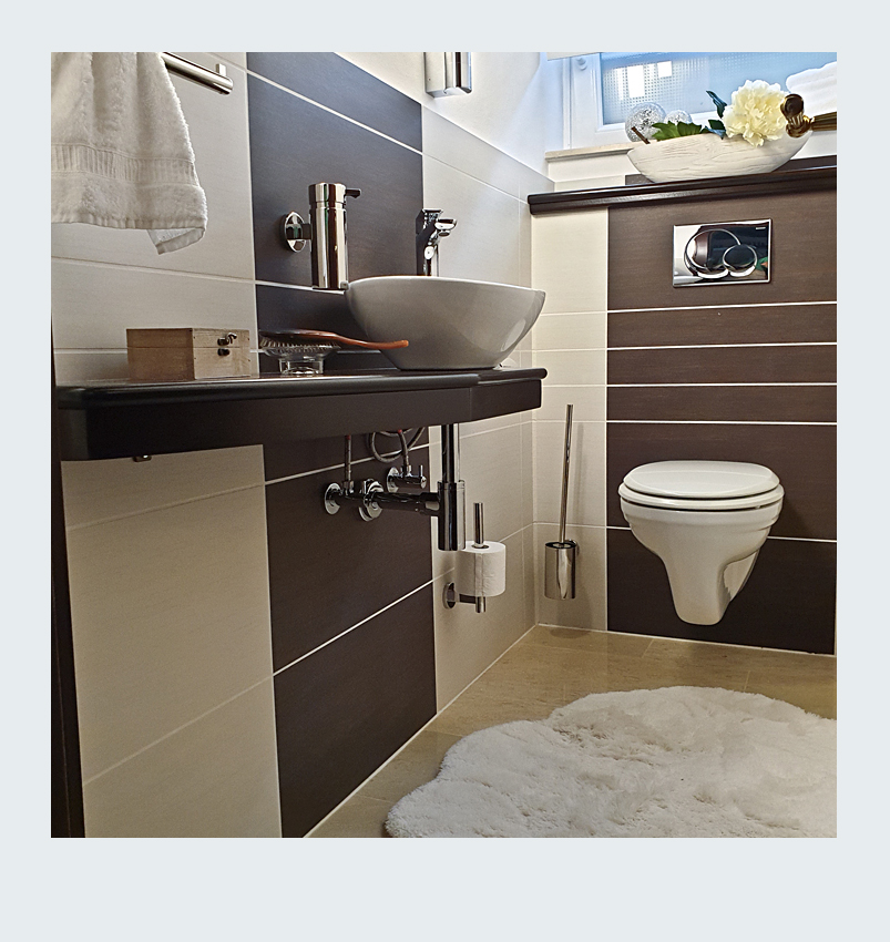 Das in die Jahre gekommene Gäste-WC erstrahlt nach einer Komplettsanierung in neuem Glanz. Von der Planung bis zur Ausführung haben wir alle Arbeiten selbst ausgeführt, um ein Ergebnis zu erzielen, das genau unseren Vorstellungen entspricht. Unser Ziel war es, eine frische und zeitgemäße Atmosphäre zu schaffen. Dazu wurden die alten Fliesen und Sanitärelemente entfernt und der Wandputz sorgfältig ausgebessert. Neue, moderne Fliesen haben wir verlegt. Ein Highlight ist der maßgefertigte Unterbau für das Waschbecken und die Ablage am Fenster, die wir aus dunkel gebeiztem Buchenholz in aufwendiger Handarbeit selbst angefertigt haben. Die Sanitärelemente wie WC und Waschbecken wurden durch moderne Modelle ersetzt, ergänzt durch moderne Armaturen, die Funktionalität und Design perfekt vereinen. Ein elegantes Doppelrollo am Fenster rundet das Gesamtbild harmonisch ab. Entstanden ist ein Gäste-WC, das modernes Design mit hoher Funktionalität verbindet.