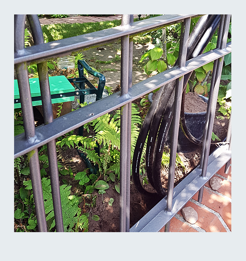 Die Bewässerung unseres Gartens stellte uns vor eine besondere Herausforderung: Aufgrund der vielfältigen Flächen mit großen Bäumen, breiten und schmalen Beeten sowie ausgedehnten Blumen- und Pflanzflächen wäre ein automatisches Bewässerungssystem nur mit erheblichem technischem Aufwand realisierbar. Hinzu kommt die Größe des Gartens, die das tägliche Gießen mit einem langen Gartenschlauch sehr zeitaufwändig und anstrengend macht – ganz zu schweigen von der Gefahr, die Pflanzen dabei zu beschädigen. Um diese Probleme zu lösen, haben wir mit viel Sorgfalt und Einsatz ein Bewässerungssystem mit 4 Wassersteckdosen und einer Gesamtlänge von über 50 Metern installiert. Die Verlegung der Kunststoffleitungen war eine Herausforderung in der Umsetzung und aufgrund der Gegebenheiten unseres Gartens eine anspruchsvolle Aufgabe. Zahlreiche Wurzeln von Bäumen und Sträuchern mussten teilweise entfernt werden. Bereits verlegte Elektroleitungen erschwerten die Arbeit zusätzlich. Trotz des großen Aufwands ist die Installation der Anlage gelungen und bringt nun viele Vorteile mit sich. Dank der Wassersteckdosen ist eine fest installierte Gartendusche für die heißen Sommermonate kein Problem mehr. Eine weitere Wassersteckdose in der Nähe des Gartenteichs erleichtert das regelmäßige Nachfüllen – ohne lästiges Hantieren mit einem langen Gartenschlauch. Wasser ist nun überall im Garten schnell verfügbar, was die Pflege unserer Pflanzen wesentlich  angenehmer macht. Die Wassersteckdosen bieten nicht nur mehr Komfort, sondern sparen auch Zeit und schonen unsere Pflanzen.