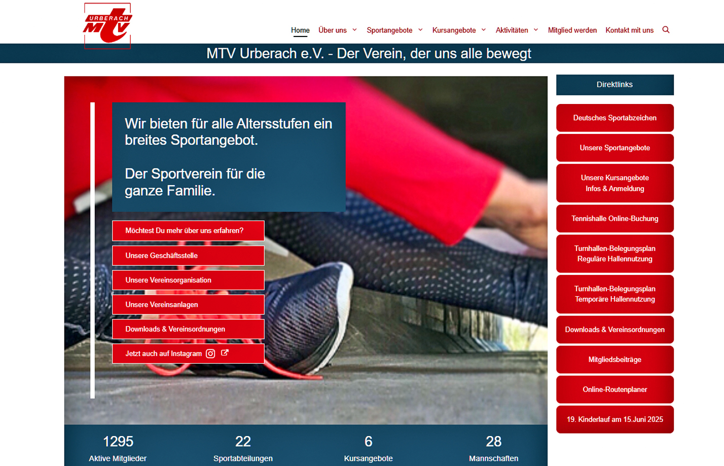 Für den MTV Urberach habe ich die komplette Gestaltung und Umsetzung einer modernen, responsiven Website übernommen. Die neue Website umfasst die Darstellung von 22 Sportabteilungen und bietet ein zeitgemäßes Design, das die Vielfalt des Vereins widerspiegelt. Das bestehende Logo wurde behutsam modernisiert, während die Seitengestaltung komplett neu entwickelt wurde.