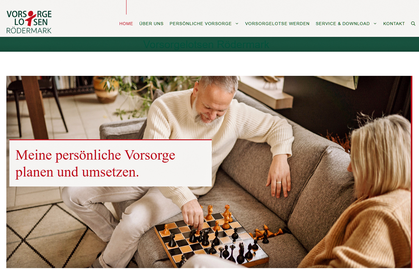 Für die Vorsorgelotsen Rödermark habe ich die Gestaltung und Umsetzung einer neuen, responsiven Website übernommen. Dabei wurde das bestehende Logo modernisiert und überarbeitet. Die komplette Seitengestaltung wurde neu entwickelt, während die Texte in enger Zusammenarbeit mit dem verantwortlichen Ansprechpartner der Vorsorgelotsen erstellt wurden.